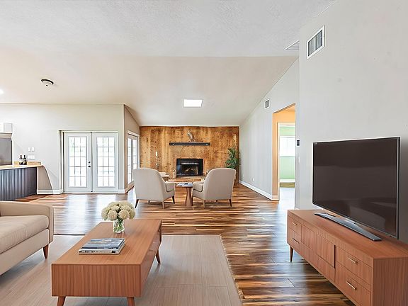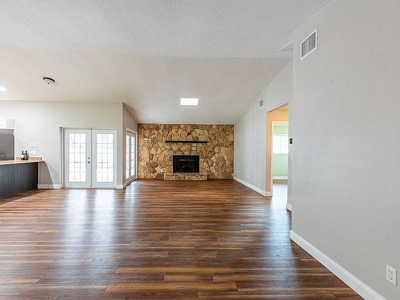 Heated saltwater poolGranite countersPrivacy fenceLarge breakfast barOpen floor planWood burning fireplaceLarge covered patio area