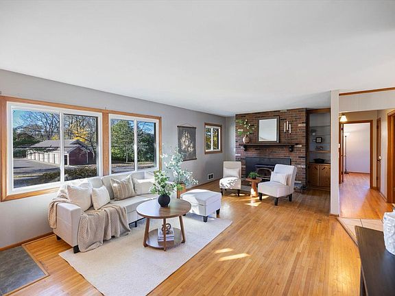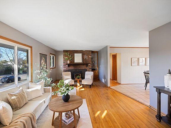 Welcome home! This warm and cozy home features three bedrooms and two bathrooms and is conveniently located close to shopping, eateries, and Highway 36. The main level boasts original hardwood floors throughout much of the space, freshly painted primary bedroom and second bedroom, and an updated bathroom. The living room features a large window allowing light to stream in, and a stunning floor-to-ceiling brick, wood-burning fireplace and insert, perfect for those chilly winter days. The lower level offers an additional bedroom, bathroom, laundry area, and additional square footage waiting for your final touches and TLC. Other amenities include tuckunder 1-car garage, shed, deck, and a chain-link fence, offering peace of mind for pet owners. Updates include: new windows and front door (June 2020), new roof on home and shed (July 2022), new siding (July 2016), main floor bathroom tub and shower (August 2021), fireplace insert (August 2006), furnace (October 2010) and dryer (October 2022. Schedule your showing today!!