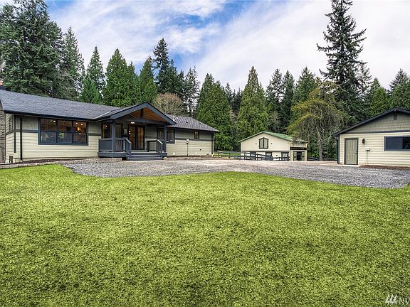 Stunning Pacific NW Equestrian Estate Home Nestled on 2 Acres of Private Land Just Minutes Away from Woodinville Wine Country. Open Floor Plan Layout with Beautiful Plank Wood Floors, Chef's Kitchen with New Cabinets, Undermount Lighting, Quartz Counter Tops with Apron Farm Sink, Stainless Appliances Including a Bold Thor Gas Cook Top. Dual Master Bedroom Suites with Spa Retreat Bathrooms Featuring Heated Floors, Tiled Showers, & Freestanding Soaking Tub. Dramatic Entertainment Deck with Heated Outdoor Living Space. Downstairs has a Wine Room & Office/Den Along with a 2nd Kitchen/Bar Area. Impressive 6 Stall Barn with Hayloft has Power/Water & Pasture Access. Detached 2 Car Garage Along with Additional Covered Workspace Below.
