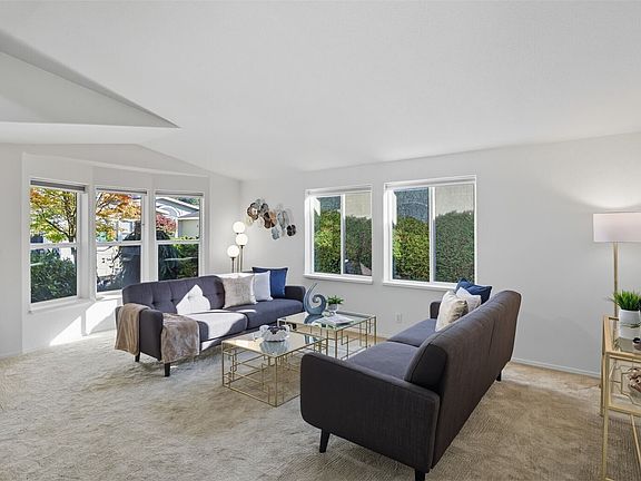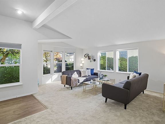 Located near the clubhouse in one of the most desirable areas of Water Gardens, Maple Valley’s premier 55+ gated community surrounded by ponds, waterfalls, and landscaped gardens. This beautifully maintained 1,950 sq ft single-level home offers newer luxury vinyl plank flooring, fresh interior paint, vaulted ceilings, and skylights that fill the home with natural light. The kitchen includes skylights, abundant cabinetry, and a dining area. The spacious primary suite features a walk-in closet, soaking tub, and separate shower with accessibility upgrades including grab bars and handheld wand. A gas furnace with central A/C & heat pump ensures year-round comfort. Enjoy the clubhouse, walking paths, and RV parking. Pre-inspected!