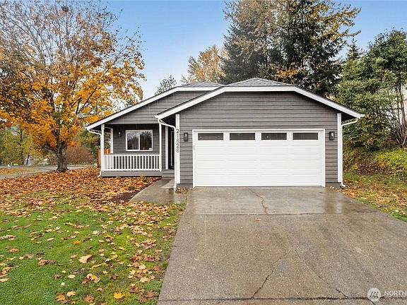 Move-in ready rambler on a spacious corner lot with views of Mt. Rainier! This 3-bed, 2-bath home features vaulted ceilings, an open floor plan, and a cozy electric fireplace. Enjoy a brand-new kitchen with shaker cabinets, quartz countertops, stainless appliances, and updated lighting throughout. Primary suite offers a large vanity plus walk-in shower and walk-in closet. Additional updates include a new composite roof, gutters, double-pane vinyl windows, doors, millwork, fresh interior/exterior paint, and new water heater. French doors open to a fully fenced yard. RV parking and an attached 2-car garage.