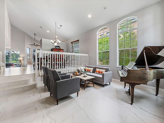 Welcome to this beautiful Mediterranean-style 4 bedroom/3 bathroom home located in the highly sought-after gated community of Olympia in Wellington. Built in 2003, this two-story residence offers nearly 2,800 square feet of comfortable living space with four bedrooms and three full bathrooms, including a spacious upstairs master suite and a first-floor guest room that can easily serve as a private office. The home's thoughtful floor plan features a formal living room, dining room, family room, and an open kitchen with ample space for both entertaining and everyday living. Upstairs, the oversized master retreat provides a peaceful escape, while additional bedrooms are generously sized. The home sits on a beautifully landscaped .16 acre waterfront lot and offers tranquil lake views. A two-car garage and inside laundry room add convenience, while the community itself delivers resort-style amenities including a clubhouse, pool and spa, fitness center, tennis and pickleball courts, basketball, playgrounds, and scenic walking paths. With top-rated schools nearby and close access to equestrian venues, shopping, dining, and major highways, this property combines lifestyle, location, and value. This is an outstanding opportunity to enjoy the best of Wellington living.