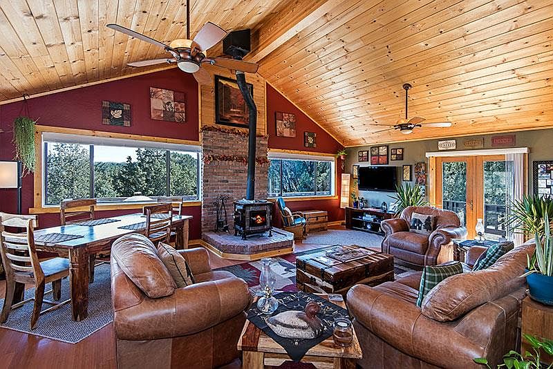 Great Cabin style home in Virginia City Highlands. Just 5 miles above Reno and 5 miles away from Historic Virginia City. All custom home area with 1 acre minimum lot size. This home has an unfinished basement that can be another bedroom, office and living area that is not included in the square footage. The great room has wood ceilings and wood floors. Also there is a wood burning stove for those cold winters nights. All of the kitchen appliances will stay with the house and the washer and dryer too.