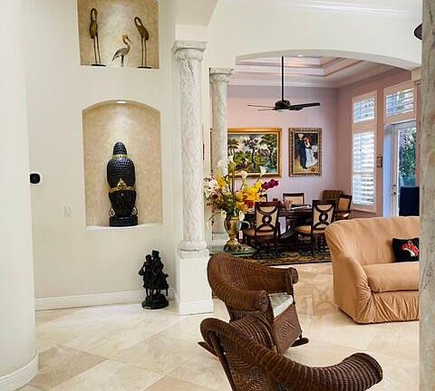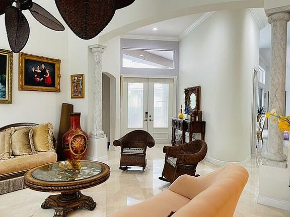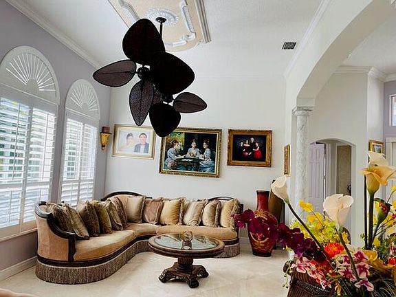 Magnificent Courtyard Style 4 Bedrooms, 4 1/2 Bathrooms. It features high ceilings, an oversized pool in a screened private patio, a backyard with artificial grass and a monkey bar installed. The home has a brand new roof, marble floors, upgraded kitchen with stainless steel appliances, a butlers area with a wine cooler, alarm system, impact windows, plantation shutters, large plantation fans, central vac, a laundry room with washer and dryer machines for small and large loads, 3 car garage plus a Tesla Wall Charger Gen 3, 48 Amps OEM. The spacious master bedroom has 2 walking closets and an oversized bath with dual sinks, dual vanities, shower, jacuzzi, a private toilet room and a door that connects directly to the pool area. Each bedroom has a private bathroom. See Addition Remarks Additional Public Remarks: Each bedroom has a private bathroom including the guest suite which also has a walking closet and a kitchenette with a private entrance. This spectacular home is in the prestigious gated community of Boca Falls which has an estate-of-the-art Clubhouse, resort style size pool, toddlers pool, playground, updated fitness center, tennis courts, basketball courts, pickleball and picnic area. The A rated elementary school of Waters Edge is only a few minutes walking distance from this amazing house as well as the Loggers Run Middle School and West Boca High School. Do not miss the opportunity to see in person this charming house. Spacious master bedroom with double walk-in closets, a gorgeous master bathroom with dual sinks and a Therapy Jacuzzi Tub. Plus there are 3 wall mounted smart TV's that can be included in the sale of the home. This spectacular home is in the prestigious gated community of Boca Falls which has an Amazing Elegant Clubhouse, Oversized Resort Style Pool, Toddlers Pool, Playground, Updated Fitness Center, Multiple Tennis Courts, Basketball Courts, Pickleball and Picnic and Play areas. The A Rated School of Waters Edge is only a few minutes walking distance from this amazing house. As well as the Loggers Run Middle School and West Boca High School. Do not miss the opportunity to see this charming home in person.