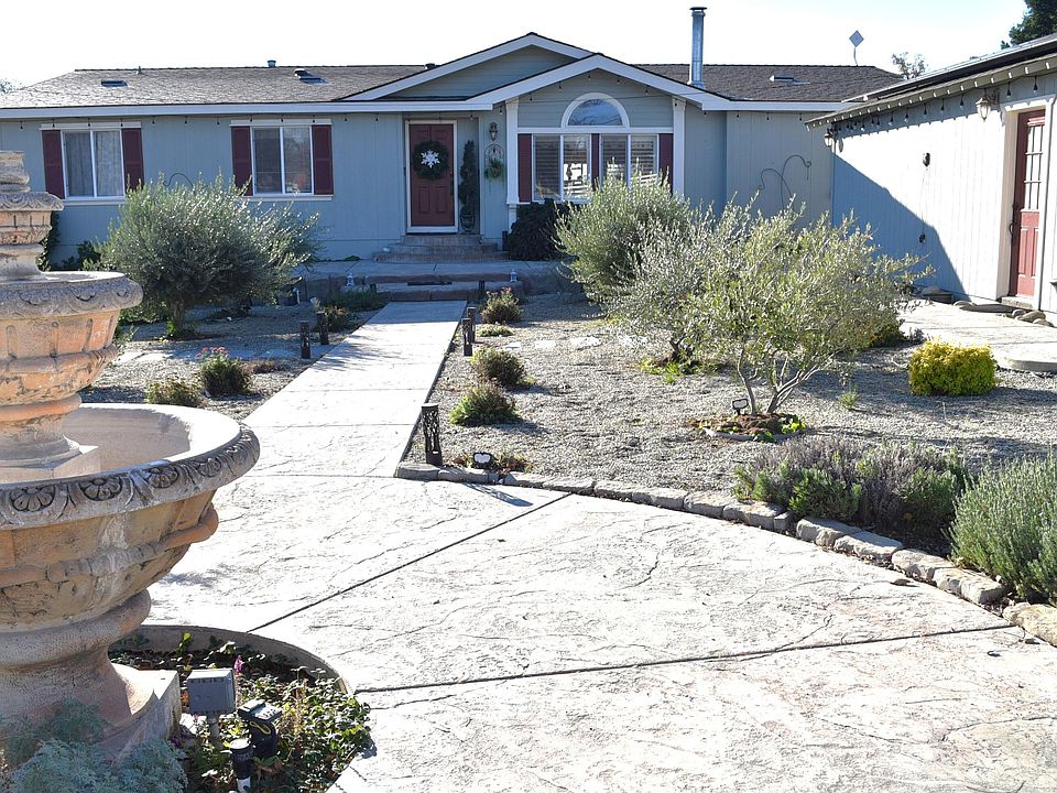 Accepting Backup Offers! Here's your chance to own a home in Palo Cedro, in the North Cow Creek /Foothill district. Gorgeous 2385sf triple - wide manufactured home sitting on 5 beautiful useable acres, entirely fenced, gated, cross fenced, with a pole barn, and a vineyard! Detached garage has been converted into a winery work room, and tasting room with 1/2 bath. Could be finished out and used as an ADU or back to a garage. Enjoy VERY LOW PGE bills with your OWNED solar panels totalling 16.5KW. The home is very functional with a remodeled and upgraded kitchen featuring high-end stainless appliances. granite slab counters, tile flooring, and newer custom cabinetry. Engineered hardwood flooring and carpet throughout. You will not believe the landscaping! Automatic sprinklers installed to all parts of the property, so raising animals or crops are easy. 24' x 48'pole barn (2 stalls, 2 tack rooms, and breezeway) for storage or animals. Over 6000sf concrete stamped patios, fountains, ponds (one with waterfall, the other very large, seasonal and is still full!), custom rock work, 3 lawns, fruit trees, vegetable garden beds, she-shed, greenhouse and MUCH MORE! Entire south facing back side of home is covered with an alumawood pergola (18' x 58') making the patio useable summer or winter! This is an upbelievable home, so great your clients WILL NEVER WANT TO LEAVE!