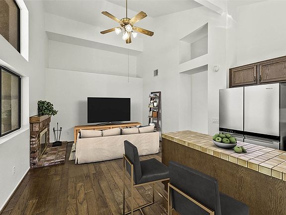 - Ceiling Fan(s), Ceramic Counters, Country Kitchen, Open Floorplan, Pull Down Attic Stairs, Recessed Lighting, Storage, Tile Counters, All Bedrooms Down, Bedroom on Main Level, Main Level Primary, Primary Suite