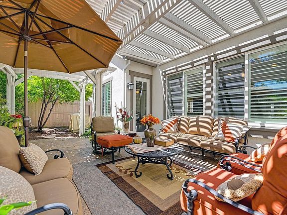 50K PRICE DROP FROM RECENT MODEL MATCH SALE! Custom upgrades throughout this spacious 2,385 SqFt home in the sought-after 55+ Del Webb The Club at Westpark. Elegant formal entry with soaring 10' ceilings and expansive 20" tile flooring throughout most living areas. Upgrades include white shutter window coverings, crown molding, recessed lighting, and pre-wired security. Spacious great-room concept connects family room, kitchen, and breakfast nook with easy access to the private backyard garden and pergola. Kitchen features island with dining bar, gas range, stainless steel hood, decorative tile backsplash, double ovens, and abundant cabinetry extending into the nook. A second entrance from kitchen to dining room adds ease for entertaining. HOA includes front yard care, private Clubhouse with pool, spa, bocce, BBQ area, outdoor fireplace, social clubs, cozy library, concierge, and 24/7 fitness center. Close to parks, trails, golf, dining, The Fountains, Galleria, Nugget, Farmers' Market, medical, transportation, and Roseville Utilities.