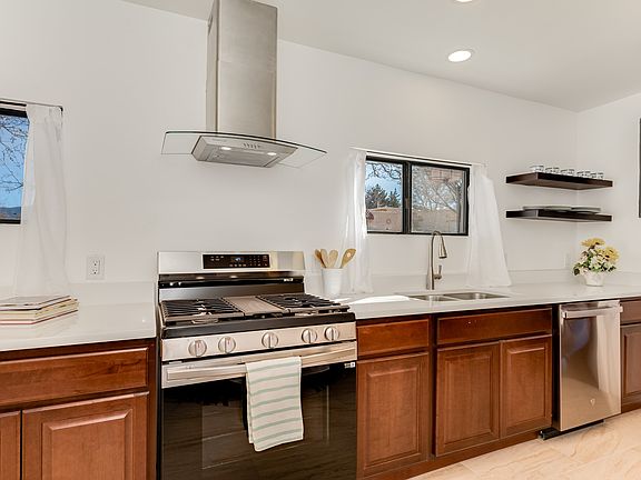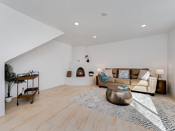 This beautifully renovated 2-level home covers 2,672 square feet of artful design and practicality. Offering an adaptable layout that can be tailored as two or three units, the entire home has been updated with recessed lighting, new kitchens complete with stainless appliances, new bathrooms, and gorgeous tile flooring. With many more features to love, including A/C, kiva fireplace, large balcony, a huge backyard and carport, this stellar property is in a prime location for commuters and ready for move-in! The main home offers two bedrooms on the main level. Upstairs, a spacious and light filled suite with secondary living area also has a separate private entry that can easily double as a light-filled studio or in-law suite, while the attached guest house presents another passive income opportunity. This established neighborhood with no HOA is ideal for commuters, a stones throw from shops, and central to everything Santa Fe has to offer.
