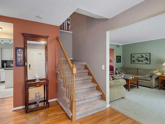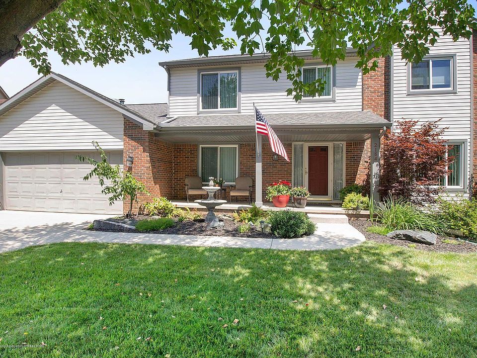 This gorgeous Colonial two-story home, located in the desirable Millstream Estates subdivision Walled Lake Schools, is nestled on a quiet cul du sac on the edge of the 300-acre Wixom Habitat Nature Preserve. Enjoy nature watching for hours from the spacious back deck with electric awning. You will notice the pride of ownership and beautiful landscaping as you walk up the front path to the large, covered porch and enter the home into the foyer to be met with hardwood floors, a large coat closet and a fantastic office/den/4th bedroom. To the right you find the spacious living room with lush carpet and large windows that flood the space with natural light. The formal dining room is rich and inviting with an attractive chandelier. The stunning, gourmet kitchen offers ceramic tile floor, granite countertops, a deep, divided farm sink, stainless steel appliances including a gas range/oven, stylish glass tile backsplash, large pantry, a center island and a large eating area.