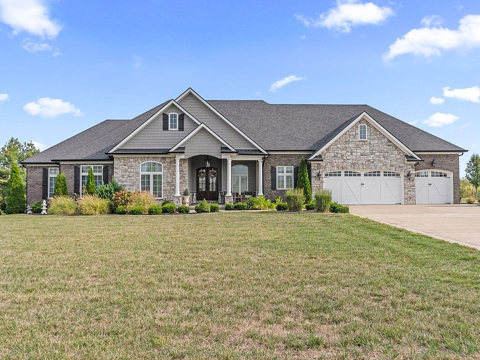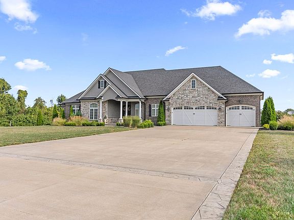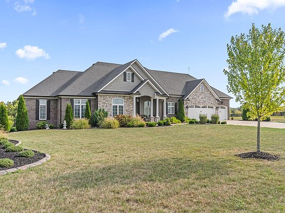 This is the first time offered for sale - a rare opportunity to own a nearly brand-new, custom-built ranch situated on 5 private acres within the city limits. Completed in 2022, this home offers almost 3,000 sq. ft. on the main level, thoughtfully designed for both comfort and style. Inside, you'll find a spacious 3 bedroom, 4 bathroom layout with a sunken living room that's perfect for entertaining or relaxing. The chef's kitchen boasts luxury appliances, quartz countertops, custom cabinetry, and a dry bar, making it the heart of the home. The primary suite is a true retreat with a large walk-in closet and spa-inspired ensuite featuring heated floors, a custom bathtub, and a designer shower. Upstairs, a bonus room with a half bath above the garage provides flexible space for an office, media room, or guest suite. Step outside to enjoy the covered back patio and heated pool, creating the perfect spot for year-round gatherings. The oversized three-car garage offers plenty of room for vehicles, storage, and hobbies. Blending the privacy of acreage with the convenience of city living, this one-of-a-kind property truly defines custom luxury.