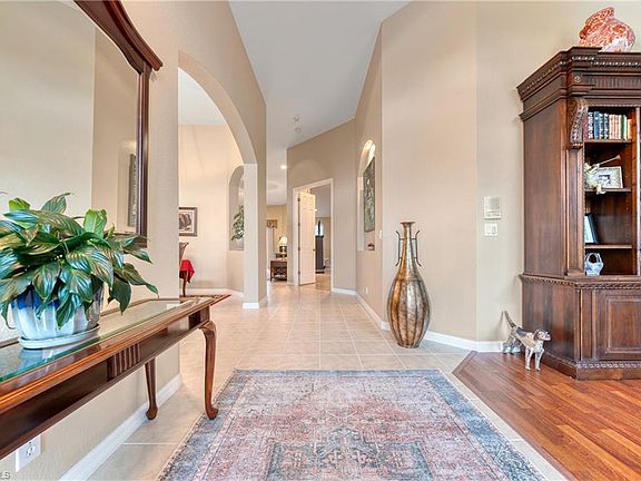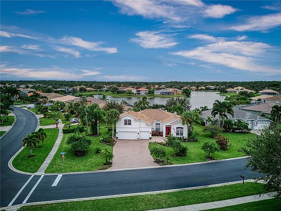 Proudly sitting atop one of the largest lots in Valencia Lakes, this Estate like property delivers stunning long water views against a Southern Sky. The generous floor plan offers 4 bedrooms and 3 bathrooms all on the first level, an extended 3 car garage, and a bonus room that could be a perfect office, secluded den or 5th bedroom. A newly upgraded pool and spa shimmer at night with LED accent lights and provides the perfect setting to enjoy this backyard oasis. Owners will have the pleasure of retreating to a sprawling Primary suite with a remastered shower, a newly installed closet system, and a cozy sitting nook. This home’s long list of upgrades include: a 3-year-old roof and gutters, recently sealed oversized driveway, brand new pool heater, newly sealed garage floor, new garage door opener, brand new carpet, new shower glass and tiles in each bathroom, fresh paint inside and out and much more. With ultra-low HOA fees, Valencia Lakes offers one of the best community values in all of Naples!