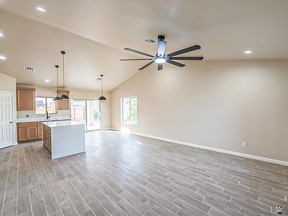 This 3 bed, 2 bath home features tile floors throughout, vaulted ceilings, and a mission-style finish with bullnose corners. The kitchen offers warm brown cabinetry, white quartz countertops, pantry and a waterfall island, with matching vanities in the bathrooms and beautifully tiled showers. All three bedrooms include walk-in closets, with a spacious master suite for added comfort. Exterior highlights include a tile roof, stone veneer accents, RV/toy parking space, and alley access—all in a central location close to everything Yuma has to offer. Owner/Agent.