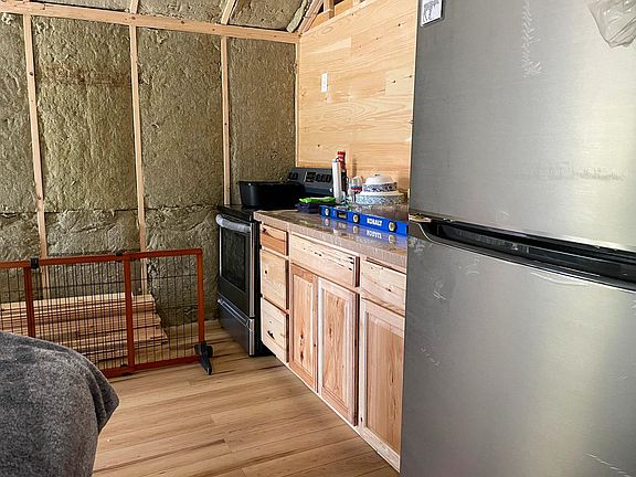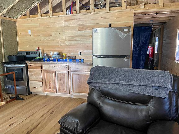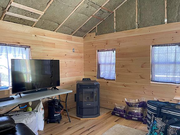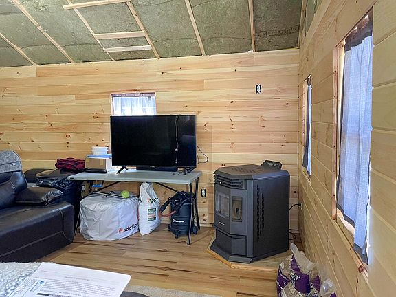 wheeler/snowmobile trails. The interior is well started, insulated with high quality, fire retardant material and though unfinished it comes with what the seller believes would be all the materials to finish it. Wired for a generator at this time, power is at road side along with
