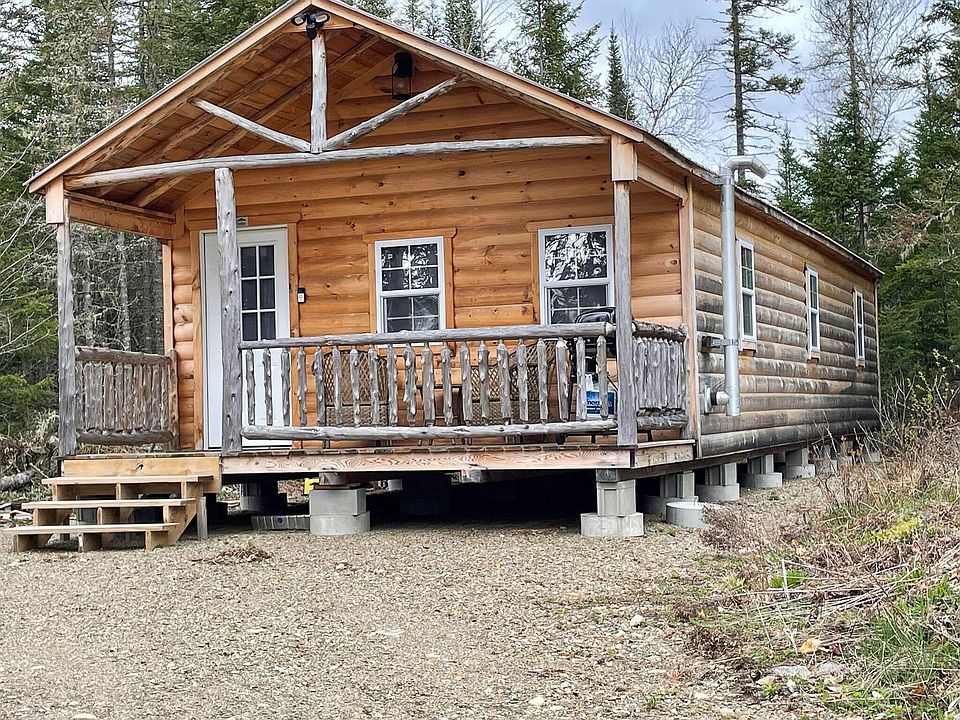 Baileyville log cabin on 28.3 acres. This 16 x 46 Amish built log cabin has a nice front porch to relax after a day of enjoying the Maine woods! Close to town, yet easy access to lakes and 4