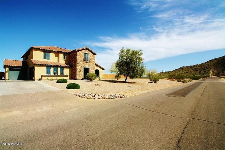 JUST REDUCED! This gorgeous home has it all! This extremely spacious 4 bed + Den/office downstairs (can be 5th bed) has all the upgrades & elegant touches. Chefs Kitchen w/ Beautiful granite counters, huge island/breakfast bar wonderfully accented w/ rock finish. Walk in & butler pantry. Rock fireplace in family room. Large dinning in kitchen & dinning in living room. Travertine tile throughout, upgraded carpets. Huge master w/ sitting area & large ensuite, 2 walk in closets, beautiful tub & sep. shower. Big loft, built in desks, & 3 additional large rooms. Recent fresh paint & ceiling fans. One of largest lots in community, mountain & desert views! Grass area & trees in back, w/ tons of blank space for your imagination! 3 Car & RV gate. New built across street selling $450-490k!