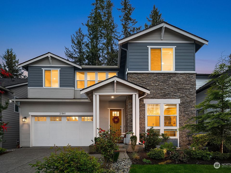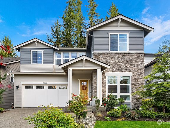 Experience the epitome of luxury living in desirable Inglewood Landing! This captivating home boasts exquisite details and premium features throughout. Step inside to discover all hardwood floors, soaring ceilings, and an open-concept layout that effortlessly combines elegance with functionality. Gourmet kitchen w/generous island, designer cabinets, SS appliances, quartz counters & custom bksplash. Luxurious primary suite with spa-like bathroom & dual closets. Three additional bedrooms, including a guest suite with an attached bath & versatile loft. Private yard with covered patio & paved sitting area overlooking big rock park for entertainment. Central AC. Steps from a vibrant shopping center, dining & parks. Lake WA schools. Preinspected.