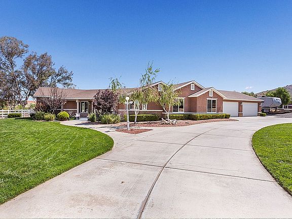 2001 Custom Built home in Gavilan Hills. Just short of 5 acres of flat usable horse property. Granite, custom sinks in each bathroom. Granite double sink in the kitchen. Self closing drawers throughout the house. Wine fridge, Large walk in pantry. Intercom system,master bedroom with Raja slate large walk-in marble shower, walk-in master closet with custom shelving, granite countertop, glass block windows.Remote Raja slate fireplace,Stamped colored concrete flooring. Built-in entertainment center in the living room with pull out storage drawers. Tiled kitchen floor with slate accents. Whole house fan, 2 new A/C units. Home office/bedroom with built in bookshelf and desk.4 car oversized garage. 6500 gallon tank well. Motorhome/RV parking with hookups. Landscaped with a variety of fruit trees and brand new drip system. sprinklers throughout the pasture and watering spigots around the perimeter of the pasture. Mare Motel, has enclosed tack room and a feed room. Three fenced turn out areas. Well water for irrigation and animals. Build your own arena or barn. Automatic entry gate. Hartford Springs trails right out your driveway! Great horse community and 10 minutes to stores and schools. So many beautiful features and upgrades you will love! Solar panels = zero electric bills... well water = very low water bills.