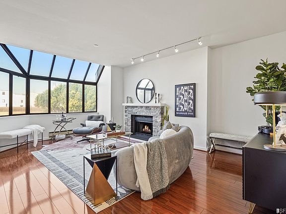 Price Reduction! Rare Three Bedroom Top Floor Condo in the unique and highly desirable Amelia complex. Enter the bright, flower-fragranced courtyard and find yourself a world away from the bustle of the City. A private patio entrance invites you to soak up the morning sun while tending your flower pots or sipping coffee. Your new home sprawls across two floors of living space and offers abundant light and high ceilings. The main level has an open living room with stone fireplace, and fully-appointed kitchen with convenient pass-though to dining room. Amp up the drama with atrium and picture windows that frame spectacular sunsets. A full bath along with that all-important third bedroom (or office or nursery!) round out this floor. Upstairs you will find a generous primary bedroom suite with full bathroom, and second bedroom with private west-facing balcony that delights with more exceptional views. Practical amenities include ample closet space throughout, in-unit washer/dryer and deeded secure garage space. Enjoy close proximity to all the exciting Fillmore shops, restaurants, bars, boutiques, delis, farmer's markets and entertainment venues. Truly convenient central location and numerous public transportation choices make this your perfect San Francisco home.