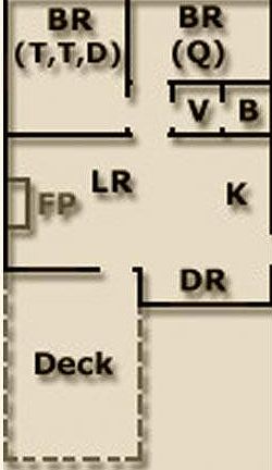 One half of a duplex, this cabin has a Queen, a Full, and two Twins in its two bedrooms. Able to be booked with its other half; there is a door joining the two halves if desired. There is a stone fireplace in the living room as well as a pull-out sofa. It is on 15 acres with other cabins, part of Valhalla Resort. All utilities included, trash, cable and Wi-Fi. No pets or parties allowed without prior disclosure under strict enforcement. 2 car spaces available also
