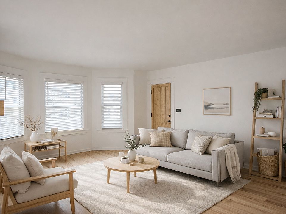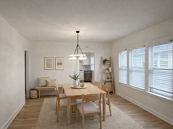 Beautifully renovated apartment featuring an open, airy layout and stylish modern updates throughout. The kitchen offers white shaker cabinets, stone-look countertops, stainless steel appliances, and updated lighting. Durable wood-style flooring runs through the entire unit, creating a warm and cohesive feel.