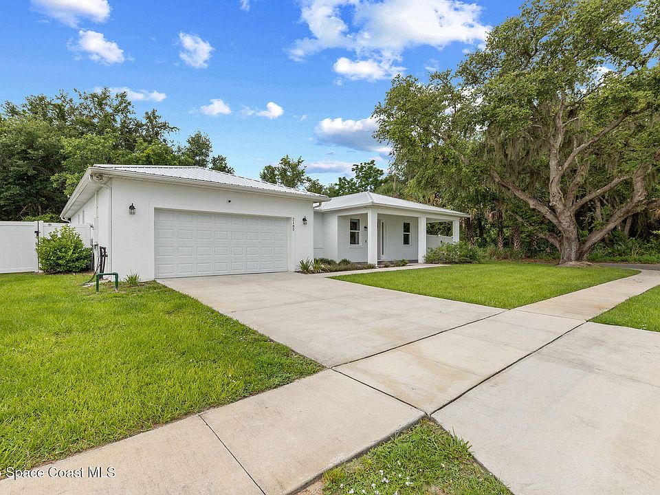 Charming Key West Style Retreat with Modern Upgrades! 4 bedroom, 2 bath Captiva model home offers 2,000 square feet of stylish and comfortable living built in 2023. Set on a premium fenced corner lot, this property blends coastal charm, privacy with modern sophistication. A durable metal roof with a radiant barrier, impact glass windows, and a smart A/C provide energy efficiency and peace of mind. Inside, stained concrete floors add a contemporary flair, flowing seamlessly into a quartz kitchen outfitted with stainless steel appliances, Shaker style cabinetry, a designer backsplash, and a farmhouse sink. The bright, open great room features tray ceilings, formal and casual dining spaces, and is accented by cordless roller shades throughout. The spacious primary suite includes a walk-in closet and a spacious primary bathroom with beautifully appointed shower. See the 360 degree tour: https://my.matterport.com/show/?m=ESpCAW7ESjJ