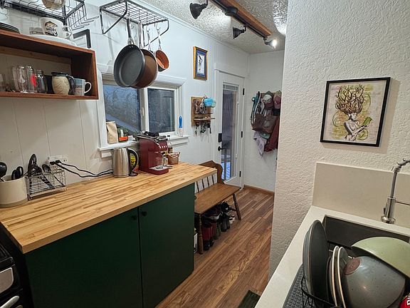 Lovely furnished studio apartment unit on top floor of main house, lots of recent updates. Main house occupied by property owner. Dedicated gravel parking area for 2 vehicles. Renter enters through gated side yard with staircase to a completely private entrance. Large storage shed for bikes, skis. (No renter access to backyard). Large private outdoor space for renter includes covered wrap-around deck with a table and chairs, solar string lights. Studio includes bed/linens, tv, chair and storage ottoman, brand new mini split air conditioning and heating system. Kitchenette with oven, stovetop, fridge, large butcher block counter space and new sink. Bathroom includes shower, no tub. Washer/dryer. 5 minutes to hospital and highway access. 40 min to Mt. Bachelor. Great neighborhood with parks nearby. 1 pet welcome. Come see it for yourself.