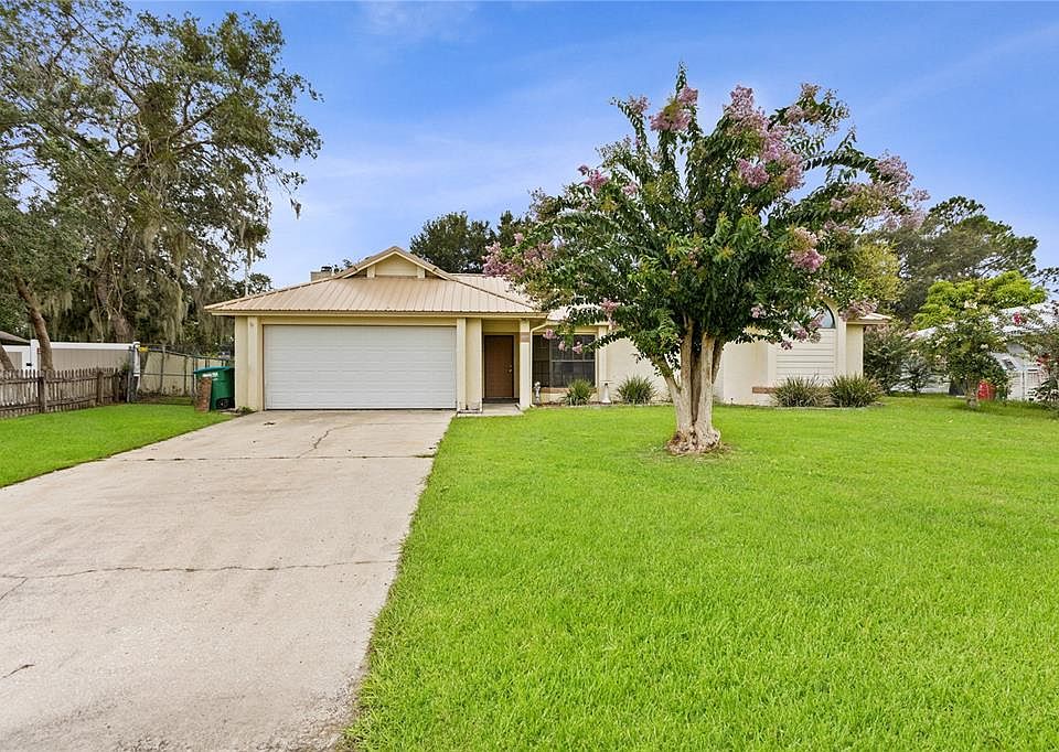 One of a kind 3/2 pool home situated in the highly sought after community of Deltona Lakes! As you enter this home, you immediately enter the oversized living room space that boasts ceramic tile floors, vaulted ceilings and an abundance of natural light. The living room directly connects to the dining room which overlooks the pool area while also providing direct access to the kitchen. The kitchen is spectacular with upgraded custom cabinets, granite counters, and custom backsplash. The kitchen also overlooks the family room which features a wood burning fireplace and newer vinyl floors making this a great layout for entertaining. The master suite is spacious with his and hers walk in closets as well as a stand-up shower and single vanity. The secondary bedrooms are also well appointed and share a bathroom with direct access to the pool area. The patio is large with ample covered seating and all while overlooking the beautiful pool and screen enclosure. The backyard comes with a shed for all your tools as well as ample room in the backyard for the family. If you’re looking for a great Deltona Lakes pool home that’s close to dining, shopping, and entertainment, then look no further because you’re home.