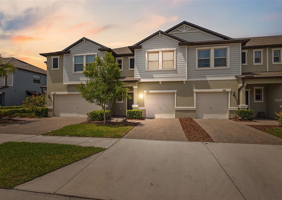 Welcome to your dream home in the highly sought-after, master-planned community of Connerton! This beautifully maintained 3-bedroom, 2.5-bathroom townhouse with a 1-car garage offers stunning water views and a tranquil lifestyle with all the conveniences of resort-style living. Step inside to find an inviting open-concept floor plan on the main level that seamlessly blends the family room, dining area, and kitchen—ideal for entertaining or everyday comfort. The kitchen is equipped with modern appliances, ample cabinetry, and a spacious walk-in pantry. A convenient half bath is also located on the first floor for guests. Brand new carpet adds fresh appeal throughout! Upstairs, you'll find three generously sized bedrooms, including a serene primary suite. Step outside to the screened-in lanai where you can enjoy breathtaking sunset views over the water—your private escape at the end of the day. A charming front porch adds even more curb appeal and a warm welcome home. Living in Connerton means enjoying top-tier amenities, including a resort-style pool, colorful splash park, clubhouse, fitness center, playground, and sports courts for volleyball, tennis, basketball, and pickleball. Explore scenic walking trails that wind throughout the community, perfect for morning jogs or evening strolls. Ideally located with easy access to US 41 and SR 54, commuting is a breeze. You'll also be minutes from top-rated local schools, Tampa Premium Outlets, Connerton Trails, dining, and all that the greater Tampa area has to offer. Don’t miss your chance to live in one of Land O' Lakes’ most vibrant and amenity-rich communities. Schedule your showing today and experience the lifestyle you've been waiting for!