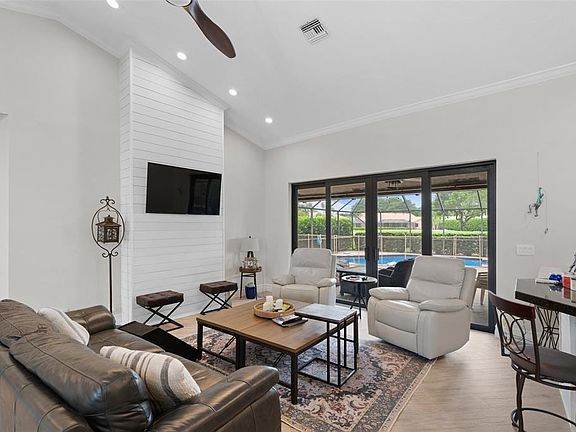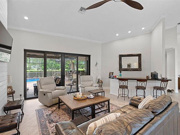 One of the best cul-de-sac locations in the wonderful Boca Woods Country club (a mandatory membership community). Fabulous recently renovated home with split bedroom layout (4 plus an office). Impact windows throughout. Over-size open concept kitchen / dining / family room plus an additional formal living and dining room with wet bar and large wine refrigerator. Huge under cover outdoor kitchen and living space, with voluminous screened in pool / patio - this home is an entertainers dream. All living spaces and primary suite open to the outdoor living space. Circular driveway, two car garage plus a golf cart garage. New pool pump and salt water system. Newer appliances. Boca Woods is a mandatory golf membership country club. $120K buy in ($1k returned when home is sold, $22k +tax per year)
