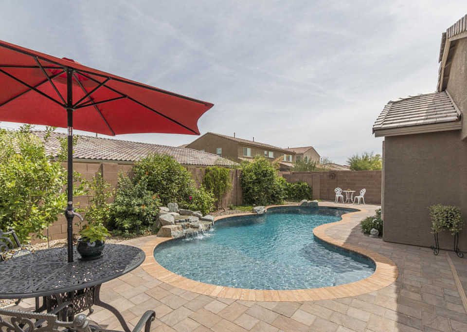 BEAUTIFUL one-owner home with 4 bedrooms & 2 baths in 1569 SqFt with an open great room floor plan. The kitchen has maple cabinetry, granite countertops, black appliances & island with breakfast bar. Refrigerator included! Sliding doors lead out to a beautiful new (2016) salt-water pool w/waterfall & paver decking, lush greenery & covered patio. Split bedrooms. The master has a private bath w/extended vanity, large shower & walk-in closet. Other features include a 2 car garage w/4-ft extension, storage cabinets & epoxy floors, custom iron front door, paver courtyard, alarm system, vinyl flooring in bedrooms, vaulted ceilings, neutral decor throughout & MUCH MORE! Community pool, clubhouse, 10-acre park, lake & sport courts, too! See this home today!