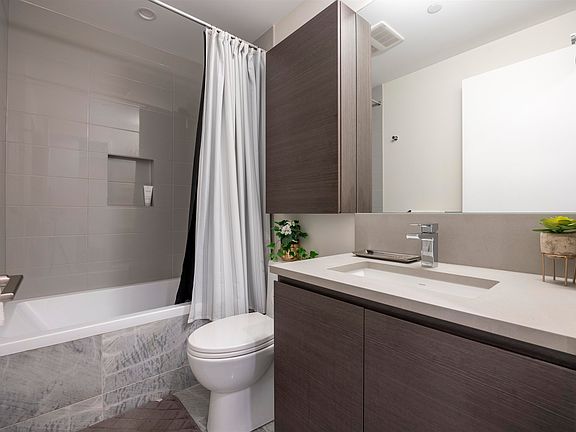 Lots of Fun! Discover luxury living in this stunning 721 sq. ft., 44th-floor junior 2-bedroom residence at Gilmore Place Tower 1. Situated in the heart of Burnaby, this brand-new home offers a bright, open-concept layout with expansive floor-to-ceiling windows—East showcasing breathtaking views of the city, mountains. The European-inspired kitchen features integrated Fulgor Milano appliances, complemented by a functional island and pantry. Residents have exclusive access to 75000 sq. ft. of resort-style amenities, including indoor/outdoor pools, gyms, a golf simulator, bowling lanes, a Sky Lounge, Game rooms, Karaoke, Theatre, and more. Located directly on the SkyTrain route with future T&T Supermarket downstairs. GST included.