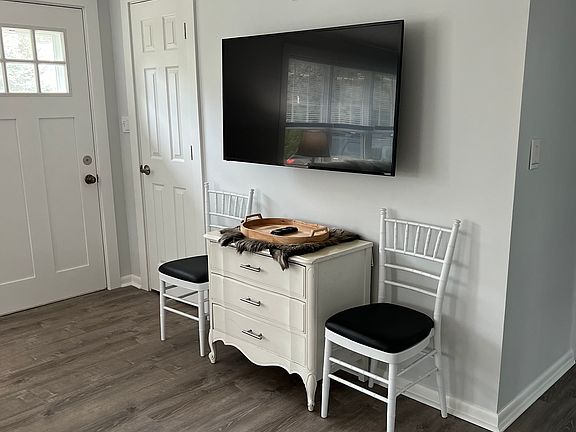 One full bathroom with shower, washer and dryer. Fire pit and outdoor seating behind house, basement includes ping pong table.