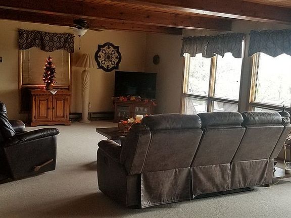 This secluded property nestled on 76.69 acres is perfect for farmers, outdoor enthusiasts or those who enjoy peaceful tranquility. Anyone would enjoy this absolutely breathtaking view drinking their morning coffee from the front deck. Enjoy the house's over 1900 sq. ft. open floor plan, including 3-bedrooms, 1 1/4-bathrooms and the feel of a cabin-in-the-woods. The acreage includes a combination of both wooded and field areas, spring water, 2 ponds and a paved driveway. The property also offers a 2-car garage, barn and above-ground swimming pool. For those outdoor enthusiasts, enjoy the ATV trails and hunting cabin. The owners recently added a metal roof and wood-siding. Don't miss out on this peaceful cabin surrounded by plenty of acreage and outdoor activities. Call 240-727-1243 to book a tour.