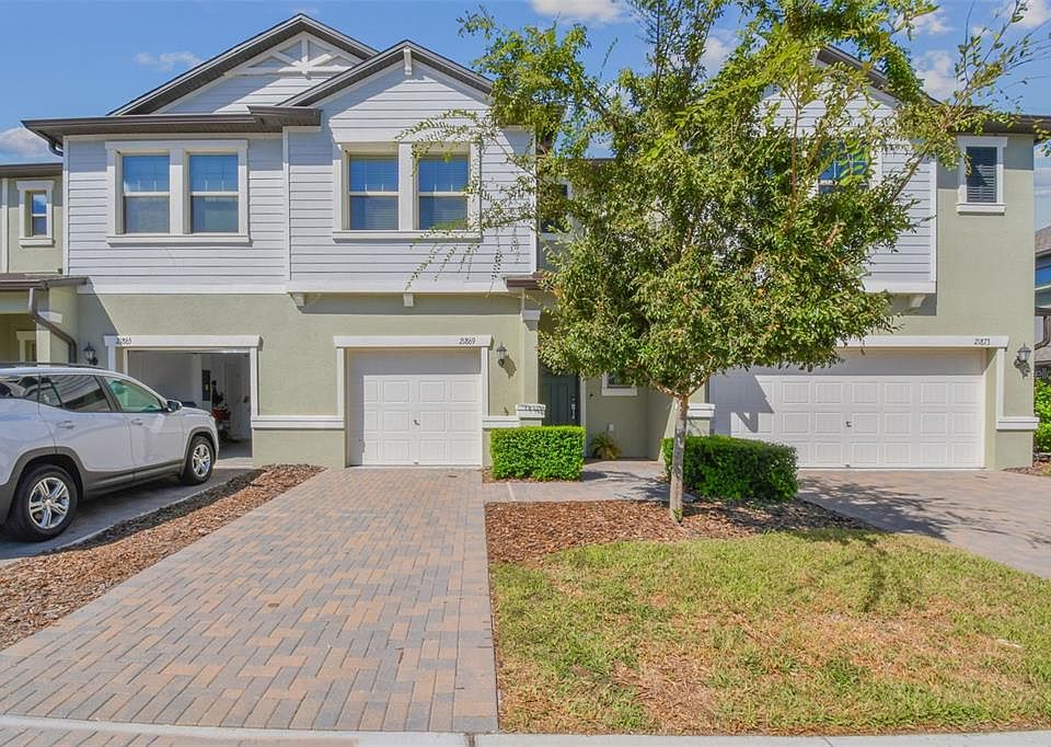 Welcome home to this stunning REMODELED 3-bedroom, 2.5-bath townhome located in the highly desirable, award-winning community of Connerton. This cozy home features a modern OPEN LAYOUT with an abundance of natural light and luxury upgrades throughout. This home boasts brand new smart BeSpoke appliances for ultimate convenience, sleek QUARTZ countertops, and a powder room thoughtfully placed downstairs for guests. Enjoy peaceful mornings or relaxing evenings on your PRIVATE BACK PATIO overlooking a beautiful pond. Upstairs you will find the master suite along with two SPACIOUS bedrooms, a loft space, and laundry room with an all-in-one washer/dryer combo making laundry days effortless and efficient. The home also includes a one-car garage and is located in a golf cart-friendly, family-oriented community with a variety of resort-style amenities to enjoy. Move-in ready and thoughtfully designed, this home blends modern comfort with everyday functionality-perfect for families or anyone seeking a stylish, LOW-MAINTENANCE lifestyle. SELLERS WILLING TO HELP WITH CLOSING COST ASSISTANCE! Book your private showing today.