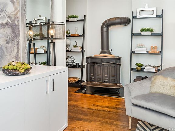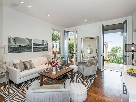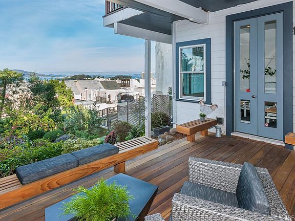 Be dazzled by Alcatraz, Angel Island & bay views. This Victorian two-bedroom, two-bathroom home is a magical urban sanctuary. The exclusive-use garden allows you private enjoyment from morning to night. The sunken living room with decorative fireplace and French doors lead to serene, verdant views. The sunlit formal dining room and remodeled kitchen open to a spacious deck and lush garden perfect for entertaining. The remodeled kitchen includes stainless appliances and marble countertops. The walk-in pantry and rollout cupboard provide ample storage. This urban oasis is complete with recessed lighting, storage, a 5:1 surround sound system in the living room and in-unit laundry. Leased parking available.