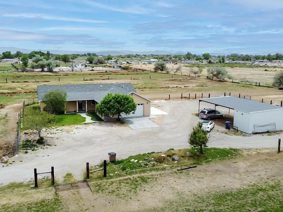 Great ranchette w/ charm in Fallon NV. 1791 sf home w/ 2 bedrooms, 2 full baths, spacious kitchen w/ custom cabinets & open to the living room & dining room. Split floor plan, granite counter tops, stone floors. Master suite is spacious w/ a jetted claw foot bathtub, walk in shower & large closet. 2 car attached finished garage, stucco exterior, fenced back yard & landscaped. Large metal covered carport/equipment big enough to park a horse trailer or RV. Located on 5 acres w/ 4.42 acre of water rights., 2 covered Horse shelters are located on the property. Well has a full house and property filtration system.