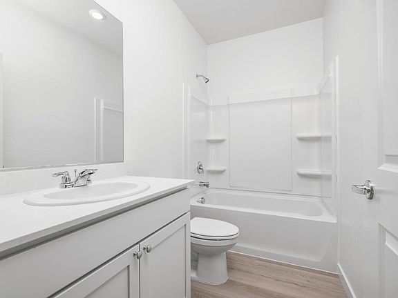 Discover everything you've been looking for in the Eureka floor plan by LGI Homes, now available in the beautiful Dantoni Ranch community. This thoughtfully designed one-story home offers four bedrooms, two full bathrooms, and a spacious, open-concept layout perfect for everyday living and entertaining alike. From the moment you step inside, you'll notice the attention to detail and high-end features included at no extra cost. The chef-ready kitchen is the heart of the home, showcasing gorgeous countertops, sleek wood cabinets with crown molding, and a full suite of energy-efficient Whirlpool® appliances, including a refrigerator and built-in microwave. A sprawling granite breakfast bar provides additional seating and prep space, ideal for casual dining or hosting guests. Natural light fills the open living areas, thanks to large windows and ENERGY STAR® LED flush-mount lighting, creating a warm and inviting atmosphere throughout. The private owner's suite features two large windows, a spacious walk-in closet, and an en-suite bath complete with a step-in shower and oversized vanity. With modern finishes, energy-saving features, and smart home conveniences already built in, the Eureka plan is the perfect blend of comfort, style, and value.