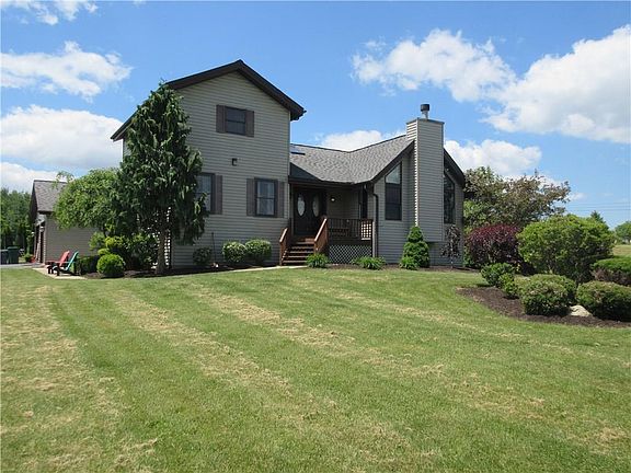 This beautiful, elegant home provides all the comfort you desire with room to breathe. The kitchen/dining combo provides room to entertain steps from a cozy den with wood burning stove and back deck. The master with cathedral planked ceilings, fireplace, on suite with soaker tub and walk in closet are not to be missed. Massive finished lower level adds all the extra room you need and the landscaped grounds boast an expansive deck and play area. Only 10 minutes from Edinboro down paved Fry Rd.
