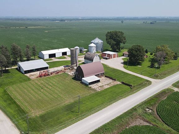 $75,000 is the nominal opening bid price. This property will be offered on a timed online auction with bidding ending November 18, 2025 at 10AM. Please reach out for more details about this property and how the bidding process will commence. An excellent opportunity to own a spacious 2-bedroom, 1,501 sq.ft. ranch-style home, complete with multiple outbuildings and grain bins-perfect for hobby farming, storage, or extra workspace. Ranch Style Home & Outbuildings on 4.67± Surveyed Acres 2 bedrooms, 1 full bath, (2) 3/4 baths, 1,501 total sq. ft. of living space on the main level. Home was built in 1995. Oak kitchen with built in breakfast table, Frigidaire French door refrigerator, Jenn Air electric stove & Bosch dishwasher. Large living room w/ adjoining four season sunroom. Main bedroom w/ ensuite bathroom with jetted tub. Main level also features a second bedroom and laundry room with a 3/4 bath. Full basement is ready to be finished and offers an egress window and a 3/4 bath. Other amenities include: attached 2 car garage, (2) wood decks, cedar siding, Lennox electric forced air furnace w/ central air, a well, electric water heater and a radon mitigation system. Outbuildings include a 40'x40' steel framed building with concrete floor, 40'x100' machine shed, 62'x62' cattle shed, 34'x52' barn & 28'x28' crib. Grain bins include a 11,000± bu. & 4,500± bu. and a 20'x50' silo.