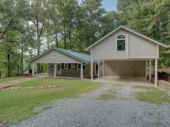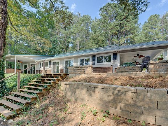 Looking for level-entry, easy access, and a beautifully updated home on a private, spacious lot in the highly desirable Tussahaw area of Jackson Lake? This 3-bedroom, 3-bathroom ranch offers just that-with thoughtful design, modern updates, and a deep-water lakefront lifestyle. No stairs from the car to a huge open great room/kitchen with a wall of windows that bring the outdoors in, connecting the living space to an expansive patio and cozy fire pit-ideal for relaxing evenings under the stars. The split-bedroom layout ensures privacy, featuring a large primary suite with outstanding lake views. Additional bedrooms are well-placed, each with access to their own full bath. Wake up to breathtaking water views and enjoy the seamless flow of the open floor plan, perfect for entertaining. A separate suite with its own entrance, kitchenette, and living area provides flexible options for extended family stays, a teen retreat, or a private home office. The entertainment area offers endless potential for a home theater or game room. Outside, enjoy 187 feet of pristine Jackson Lake shoreline, with plenty of room to expand, add a detached shop, or build an extra garage. The property is approved for a double-slip covered max dock, giving you the opportunity to build a double-stall boathouse for all your lake toys. This property combines privacy, modern comfort, and prime lakefront living in one of Jackson Lake's most sought-after locations.