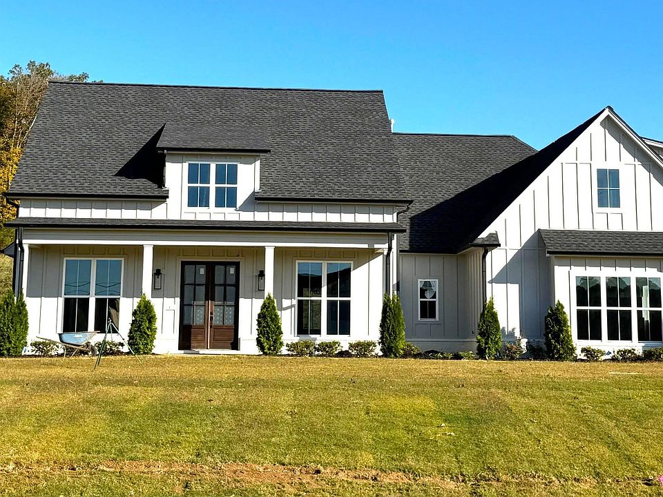 Construction 98% complete in the popular Gray's Valley community in Hernando, MS on a great 2 Acre Lot with NO City Taxes and space between your neighbors ~ DeSoto County's Best Pintail Construction offering a beautiful Farm Home with Front Porch Living and an open and split floor plan, 4 Bedrooms, 3.5 Bathrooms, and a 3-Car Garage ~ Beautiful LVP Wood Floors throughout the Entry, Formal Dining into the Great Room with Brick Fireplace flanked by built-in bookshelves and cabinets, high ceilings, and double doors to the rear covered porch ~ Open Kitchen with Center Island, Farm Sink, Upgraded granite counters, custom backsplash, Pot Filler, Gas Cook-Top with Full Vent Hood, Double Ovens, Custom cabinets to the ceiling with soft-close, and huge walk-in pantry with wood shelving ~ Primary Bedroom on the rear with LVP Wood floors, tray ceiling, crown molding, recessed lighting, ceiling fan and HUGE walk-in closet with wood shelves and cubbies ~ Primary Bathroom with Separate Granite Vanities with drawer stacks, upgraded fixtures, Soaker Tub, and Walk-In Shower with Dual Heads ~ Bedrooms 2 and 3 are on the first floor and have ceiling fans and large walk-in closets with a Jack-n-Jill bathroom between ~ Laundry Room with sink and folding counter ~ Great ½ Bath Powder Room for Guests ~ Outside find a large Rear Covered Porch with Outdoor Kitchen opening to a fully-sodded back yard with room for a pool ~ Additional Features: 12 Foot Ceilings, Formal Dining Room, Mud Area with Cubbies, Security System, Low E Vinyl Windows, Tankless Water Heater, Gutters, Garage Key Pad, garage storage nook, cedar accents, Walk-In Floored Attic, and more...