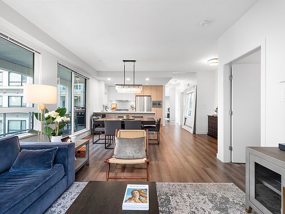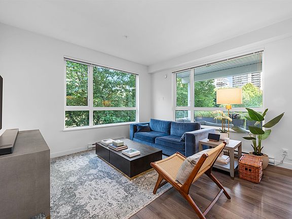 Experience elevated urban living in this 2 bedroom + den and 2 bathroom corner home at the boutique Madison & Dawson by Porte Homes. Thoughtfully curated with designer details with gallery-like ambiance. This residence offers over 983 sq ft+ of refined interiors, 9 ft ceiling with floor-to-ceiling windows that capture natural light from two exposures with an oversized 305 sq ft of covered patio overlooking the courtyard. Nestled on a serene street just steps from the world-class Brentwood Town Centre, Whole Foods, and SkyTrain. Entertainment and shopping are all at your doorsteps. Enjoy fitness studio, lounge, gated courtyard with BBQ and a guest suite for visiting friends and family that is well-maintained by strata. One parking and One Locker included. Book your private tour today!