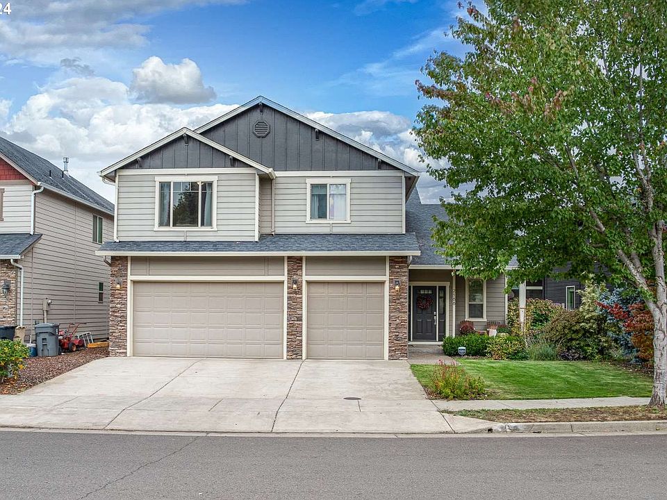 3 bedroom, 2.5 bath, 2561 sq ft home located near the Santiam River.The house includes 3-car garage, bonus room, office, dining room, gas fireplace, central A/C, granite countertops, and a covered back patio. Upgraded appliances including gas stove. Electrical hookups in the garage for EV Charging.All windows with cracked seals were replaced at the end of 2023.All new laminate flooring downstairs and carpet upstairs installed in 2023.