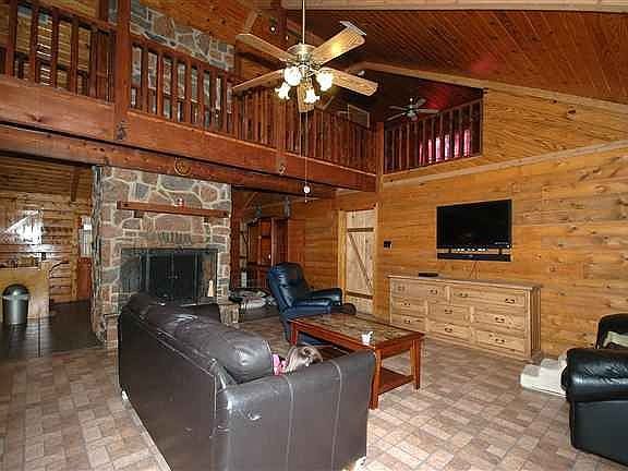 Large Gholson area 3br/3ba log house tucked away on just over 2 beautiful, tree-lined acres. Modern kitchen, separate laundry room, lofted bonus room, large dining area, wood-burning fireplace, isolated oversized master and workshop/storage building with electricity and single bay garage. Survey available.