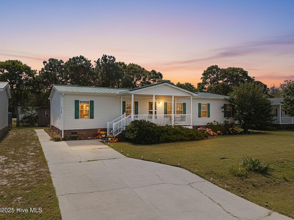 Perfectly positioned between Holden Beach and the welcoming town of Shallotte, this 3-bedroom, 2-bath manufactured home delivers easy coastal living with thoughtful updates and timeless comfort. Enjoy peaceful mornings on the beautiful covered front porch, or unwind by the wood-burning fireplace in the cozy family room. The formal living area is bright and inviting, and the kitchen offers plenty of cabinetry and counter space for everyday convenience.