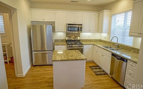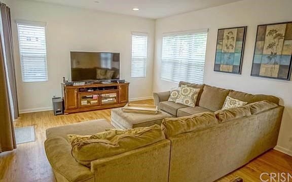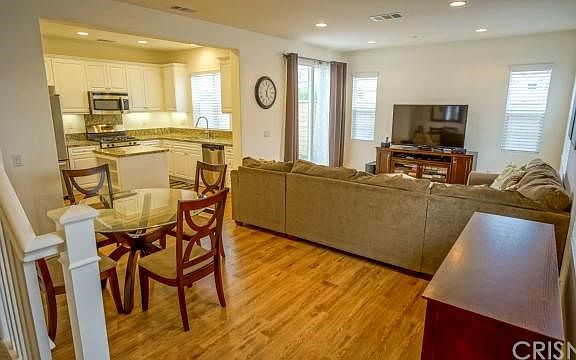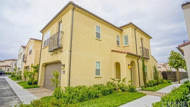 ONE YEAR OLD SINGLE FAMILY RESIDENCE, BEHIND THE GATES IN SANTA CLARITA'S HOTTEST NEW HOME DEVELOPMENT... VILLA METRO! Why buy from the builder when you can have all of the upgrades already completed, and your backyard already landscaped? Commercial wood flooring wraps around this spacious down stairs, and leads you into the open style kitchen. This kitchen features plenty of cabinet and counter space, recessed lighting, granite counters, and stainless steel appliances so you can enjoy modern conveniences. All 3 bedrooms are upstairs, and the master suite is separated from the other 2 for privacy. There is a separate laundry room upstairs for your convenience. All windows on the upper level have plantation shutters for sleeping ease. The master suite features a Romeo & Juliet balcony, and large walk in closet. This is one of newest neighborhoods in Santa Clarita, and has been built to the current standards of energy efficiency including tankless hot water heater system. The neighborhood has an amazing pool / spa / and modelesque club house and best of all this home IS FHA APPROVED! Don't miss this opportunity to live in Villa Metro.