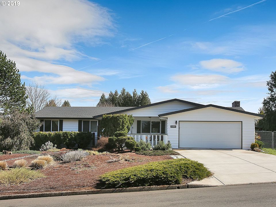 Updated one level in great neighborhood! Large private, fenced lot with view of Mt. Hood. Outbuilding with loft and exterior covered portion. Fresh exterior paint, rebuilt chimney and driveway.Large updated kitchen with granite, eating nook with built-in bench seating and island, tile floors and open to family room and dining room with hardwood flooring. Fenced front porch with seating area for enjoying sunsets.