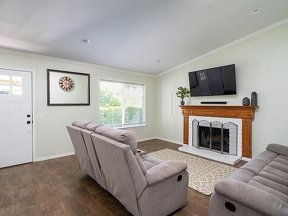 Much sought-after single-story home in Saugus! Walk into this 3 + 2 home to find a warm and inviting living room with fireplace and updated tile flooring throughout. The kitchen is light and bright with beautiful white cabinets, recessed lighting, center island and a large dining room big enough for family gatherings. The primary suite is spacious with ceiling fan, recessed lighting and ensuite bathroom that has been updated. There are 2 more bedrooms both with ceiling fans, recessed lighting and large windows letting in lots of natural light. There is another full bathroom with a shower/tub combo and the washer and dryer hookups are conveniently located in the direct access garage. The backyard is private with a covered patio and large grass area perfect to make your own. There is a community pool, tennis courts, basketball court, parks, playground and it is within walking distance to an award-winning high school. With a low HOA and NO Mello Roos this home is a must see!