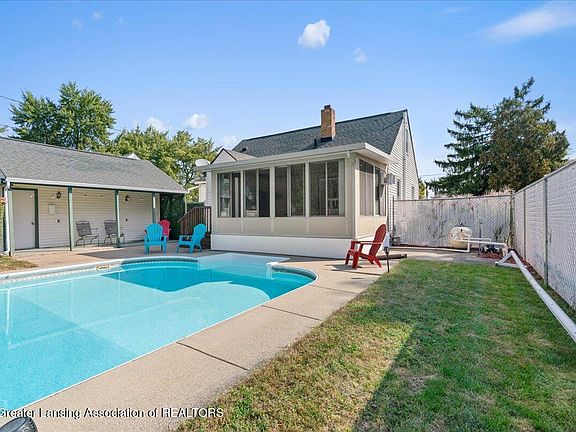 Welcome to 2189 Aurelius Road! This absolutely charming 3-bedroom, 1-bath cape cod home offers a wonderful blend of comfort and convenience. The updated living area flows into a bright kitchen and eat-in dining nook. The 3 seasons room is perfect for relaxing with morning coffee or enjoying views of your backyard oasis! Step outside to a stunning inground pool—ideal for summer entertaining and making memories, along with stamped concrete, and a gorgeous lawn area. There are two bedrooms and a bath for those who may be seeking the ease of main floor living. This home is conveniently located near schools, shopping and restaurants, but you may never want to leave! This home is move-in-ready and waiting for you to make it your own!