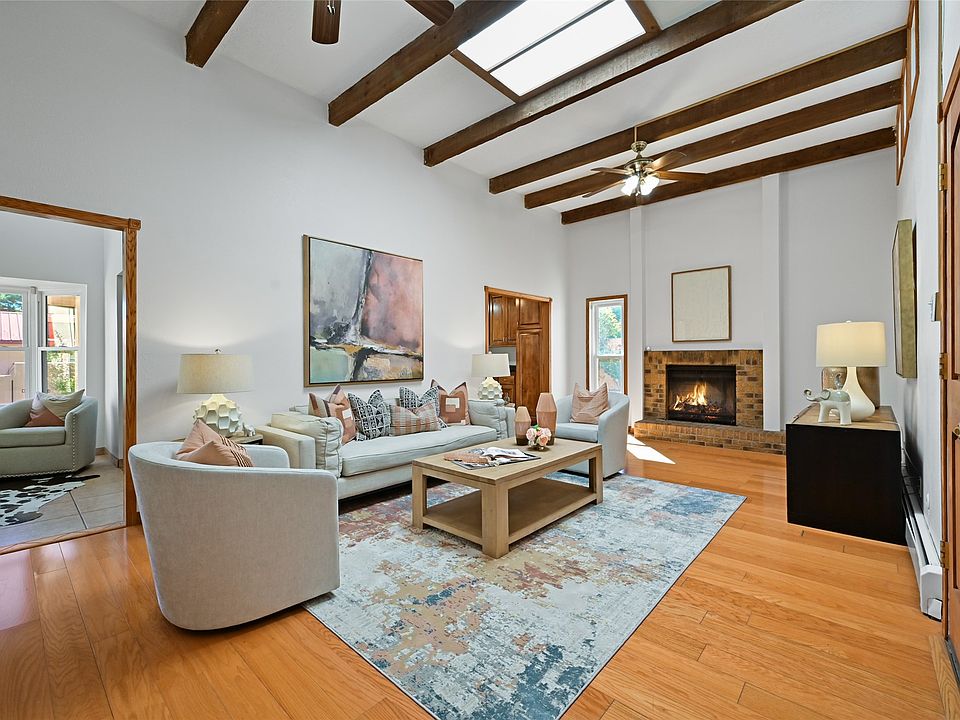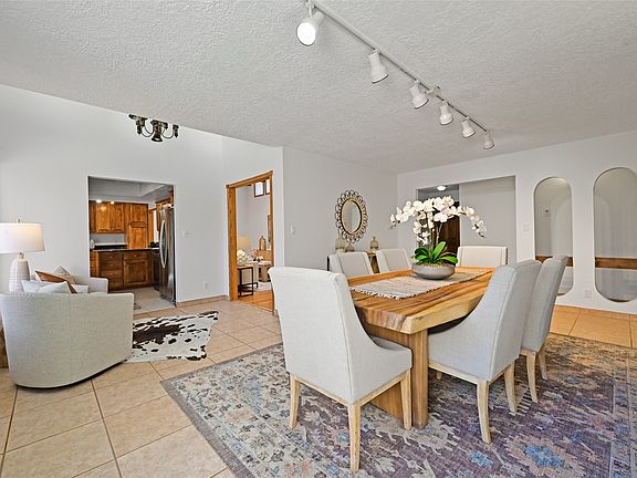 This house feels like a home. It’s the real estate equivalent of comfort food! From the mid century modern details in the living/dining area to the updated kitchen to a lovely sunroom opening onto the large, private patio and rose garden, everything about this place is welcoming. The primary suite offers many options with a spacious bedroom, ensuite bath, huge walk-in closet and two adjoining rooms that can be configured to suit many needs — home office, media room, workout space, nursery, play room, yoga shanti, you name it! Two additional bedrooms and another full bath, all with ample storage, complete the picture. On a corner lot in a true neighborhood where people watch out for one another, you will be minutes from grocery shopping, schools, restaurants, healthcare facilities with easy access to the Railrunner and I-25. Take advantage of the recent price reduction and start your new chapter in this versatile and meticulously maintained home.